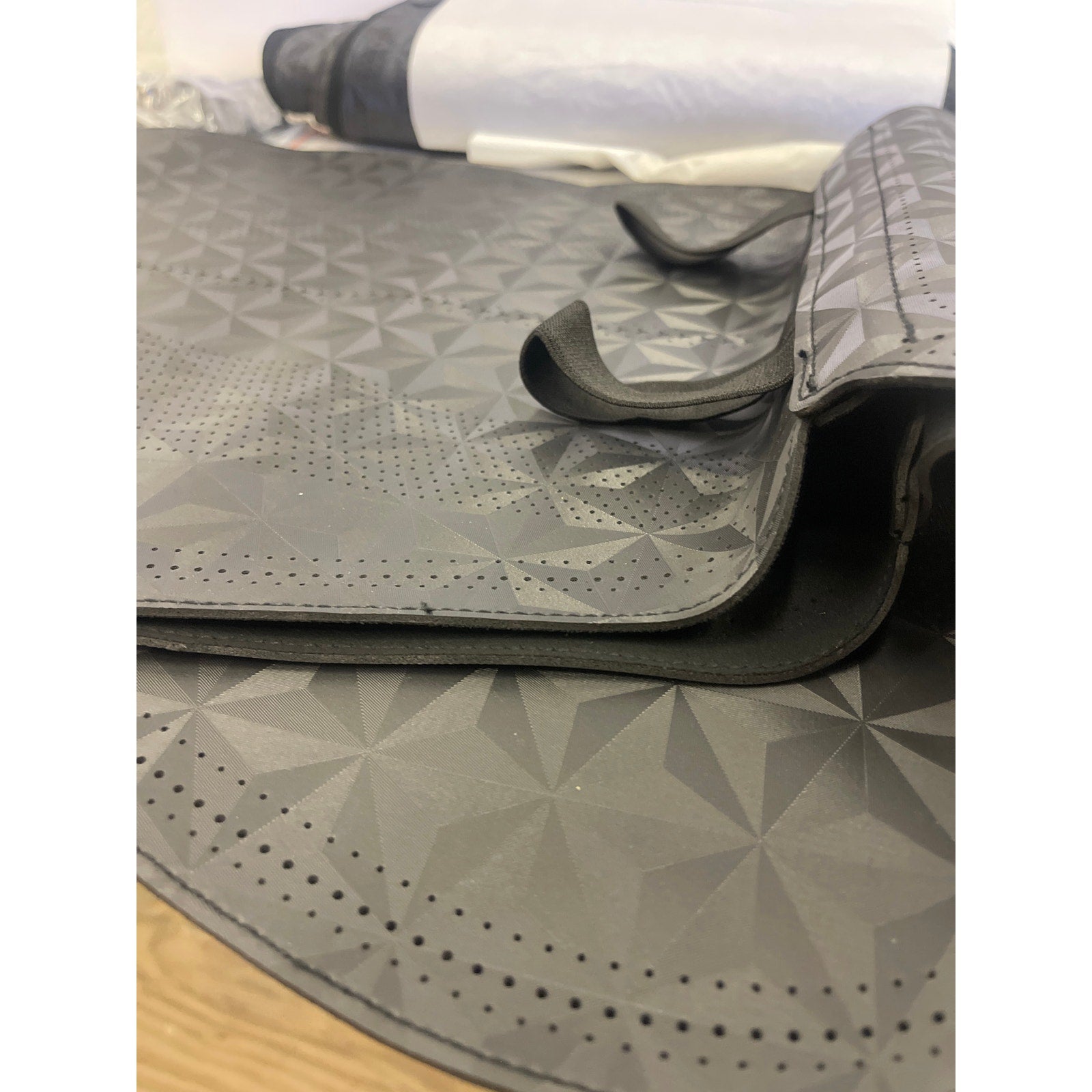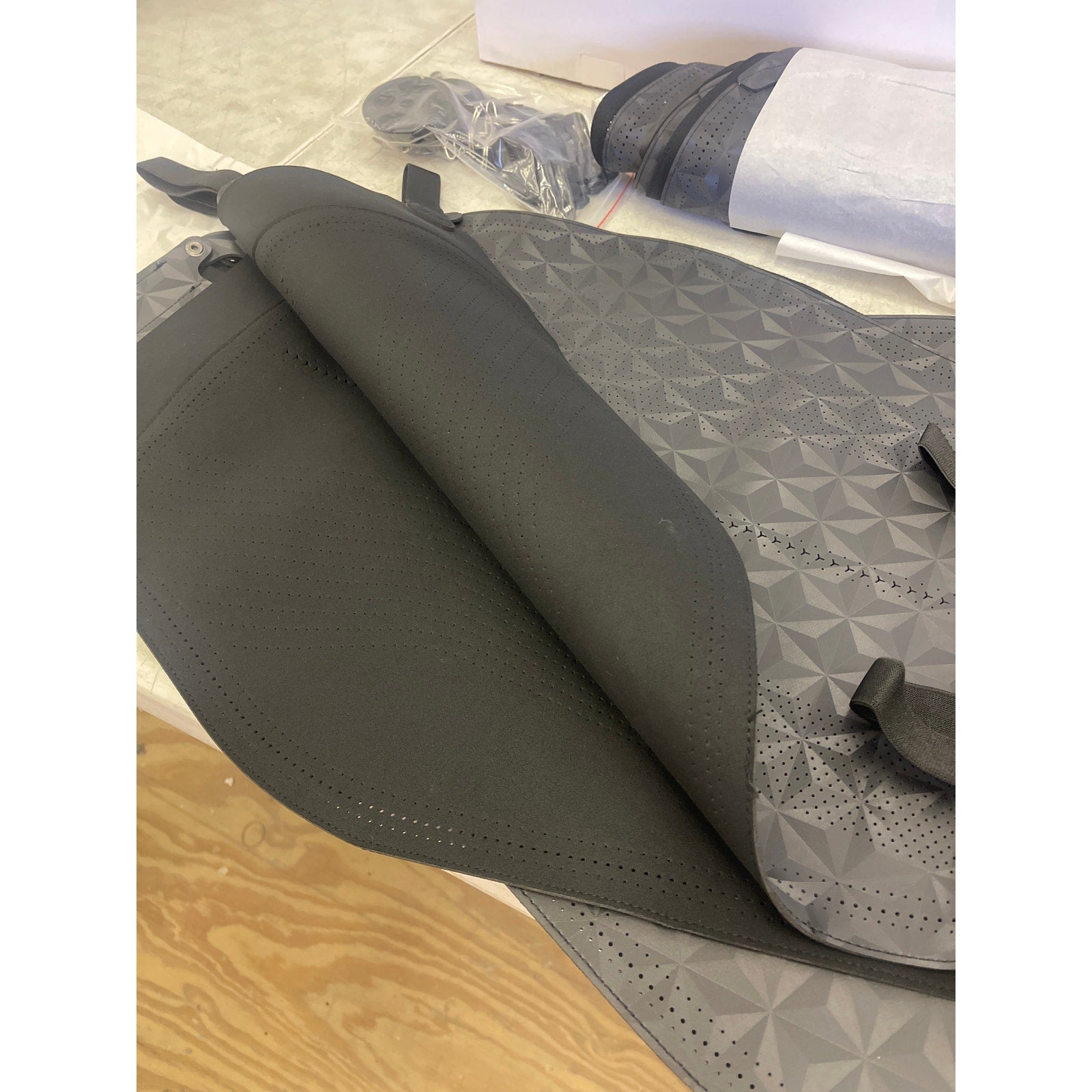 Manufacturers Description: New in original box (open), a set of 2 universal front seat covers in Black synthetic leather by OUMANNI. Includes 2 seat covers and headrest pads, designed to fit most bucket-style front seats. Breathable material, washable and stain resistant, suitable for all weather conditions.