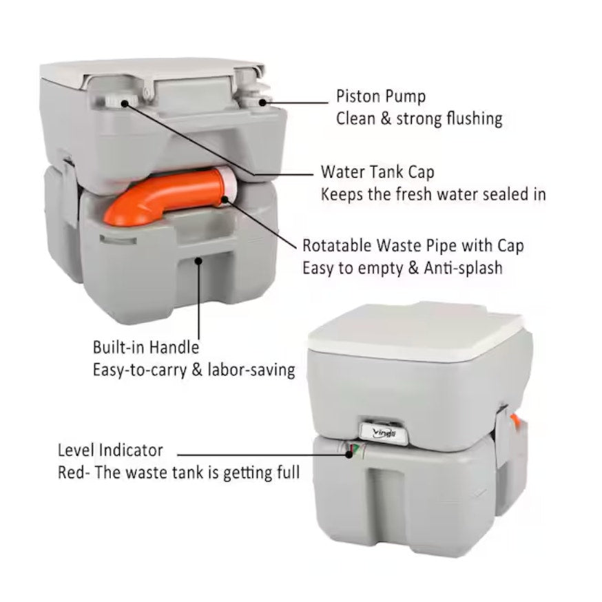Large Capacity: 5.3-gal detachable waste tank and 3-gal flush tank provide up to 95–98 flushes, reducing refill and emptying frequency.