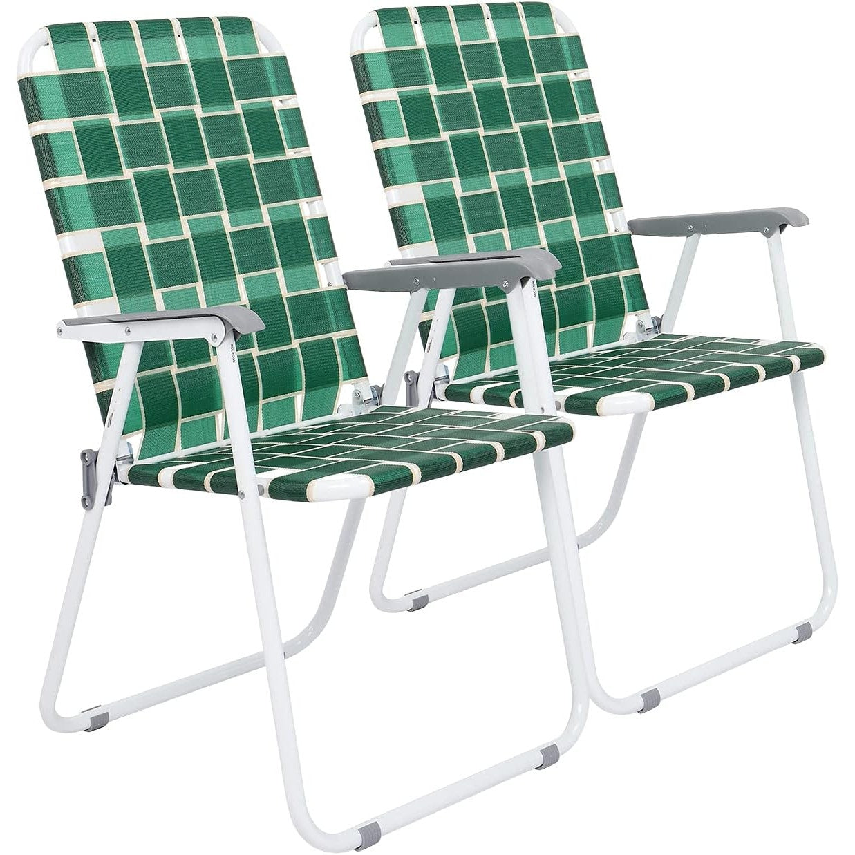 (Set of 2) Patio Lawn Folding Chairs Webbed; Outdoor Portable Seats - Green