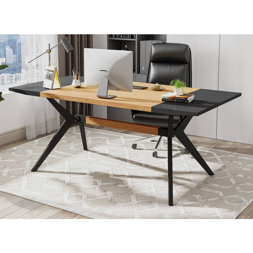Tribesigns 63" Executive Desk Computer Office Desk w X-Shape Frame Table Brown