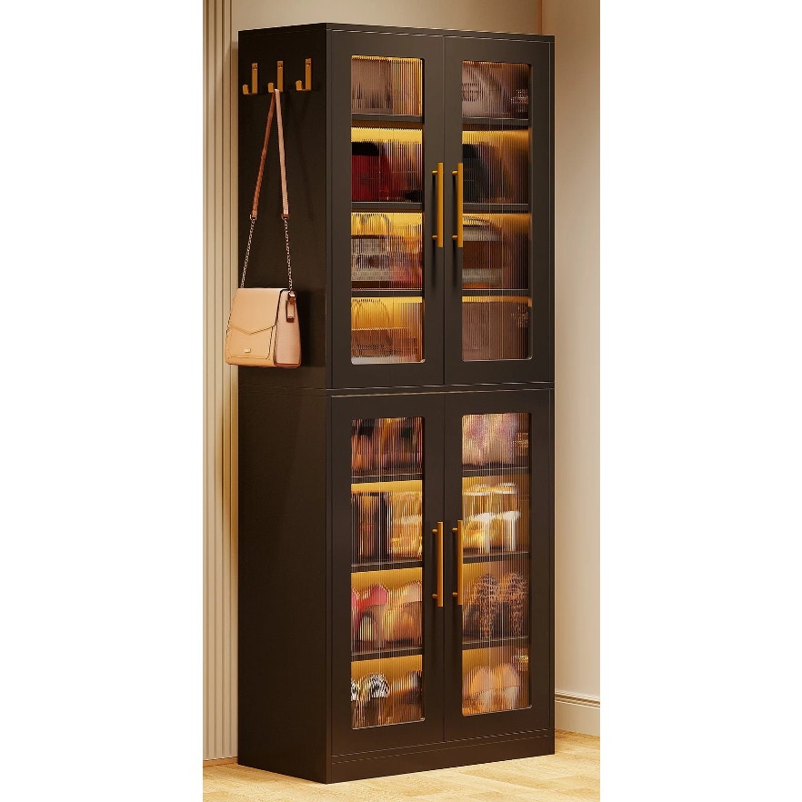 Tribesigns Freestanding Shoe Cabinet with Acrylic Doors and LED Lights - Black