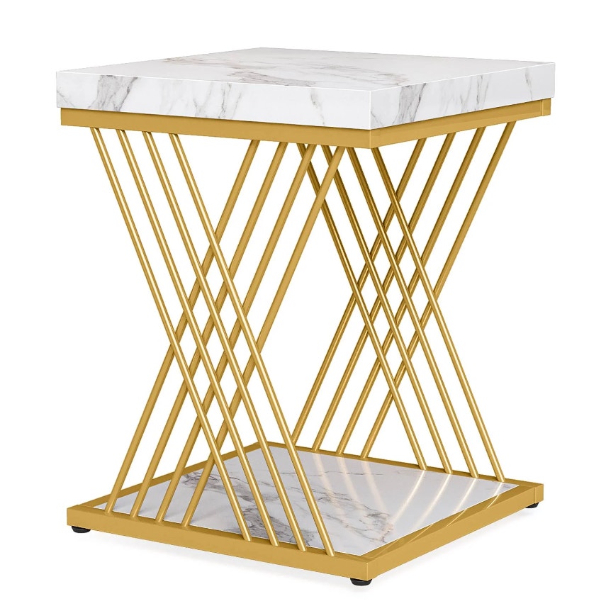 Tribesigns Square End Table 2-Tier Side Table White / Gold,, Missing Screws
