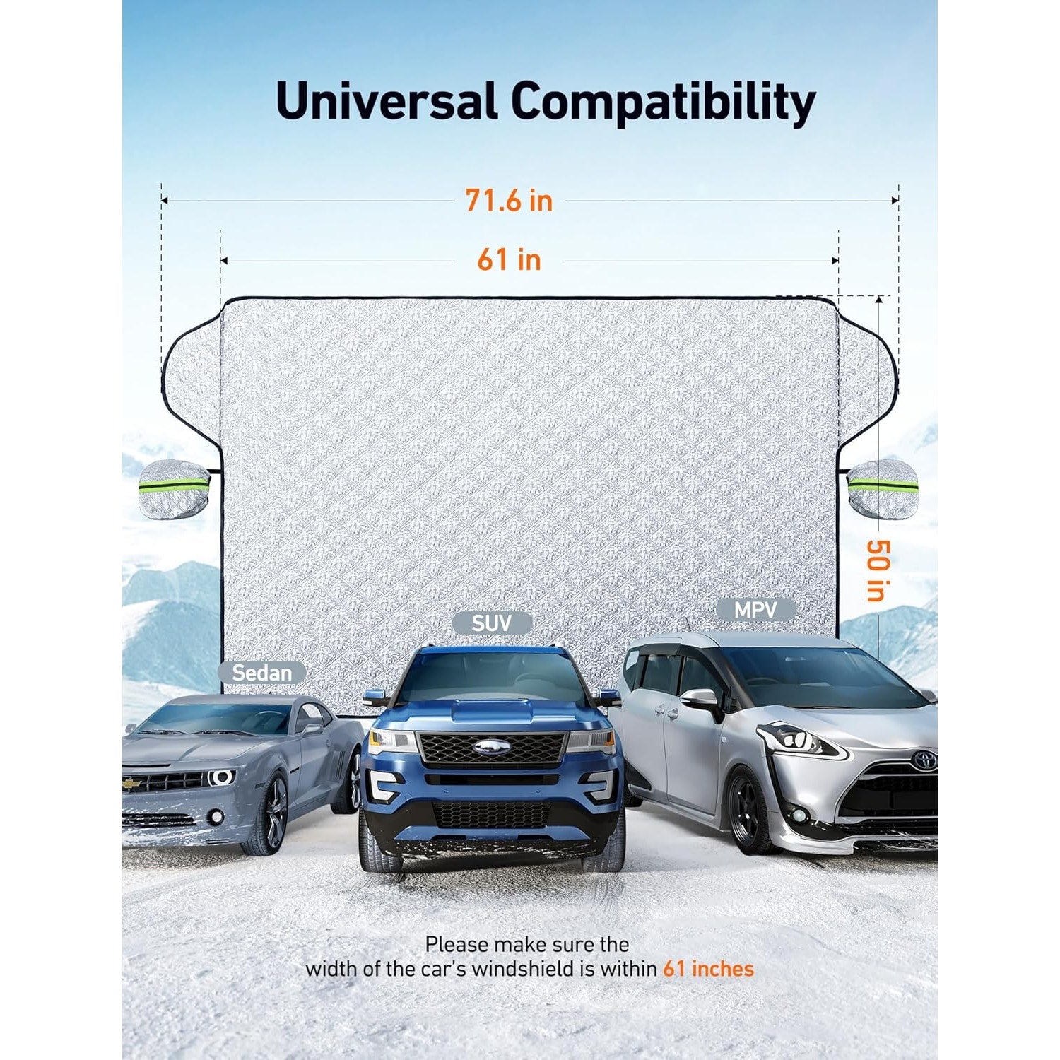 Universal Windshield & Mirror Protector Cover for Snow, Ice, UV, Frost 58" x 46"