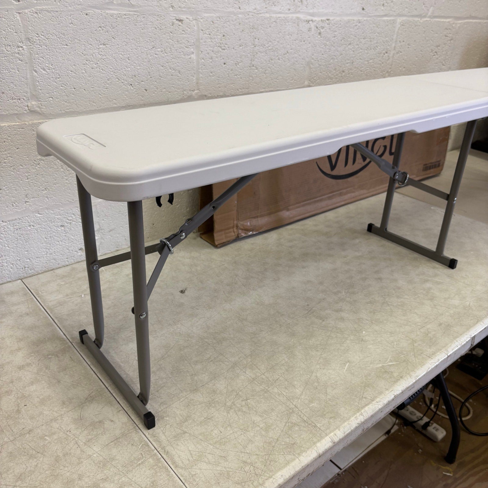 VINGLI Portable 6ft Plastic Folding Bench w Carrying Handle - 11" Wide - White