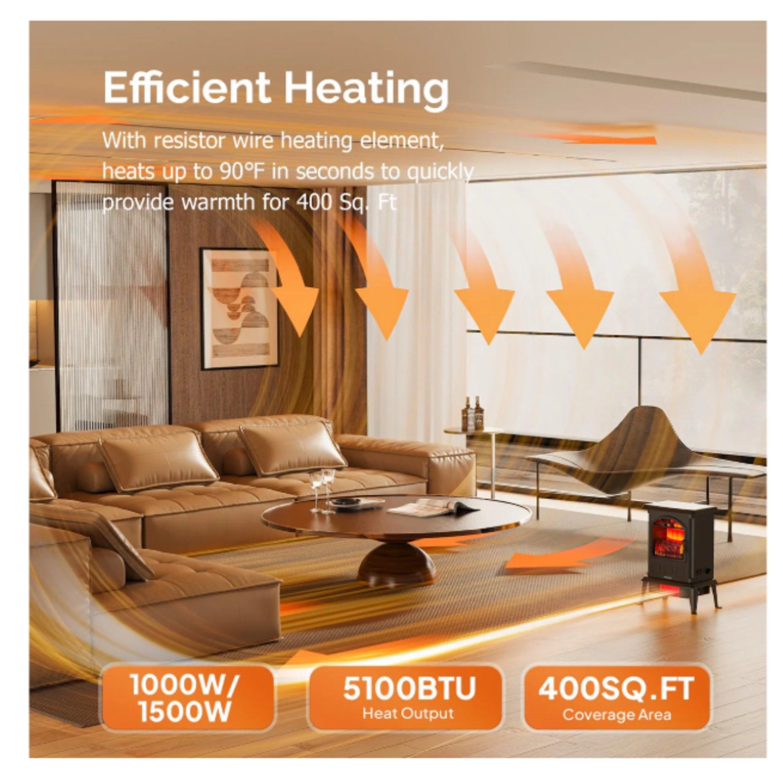 Zokop 1500W Electric Space Heater Fireplace Stove Heater - Black SEE DETAILS